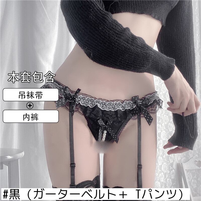 レースパールベルト ブラックストッキング セット 大人ガーリー スウィート キュート カジュアル タイツ ソックス ハーネス 真珠 セクシー A かわいい_A68998651243 | Plug Shop