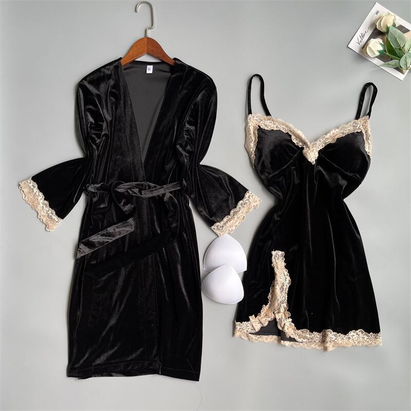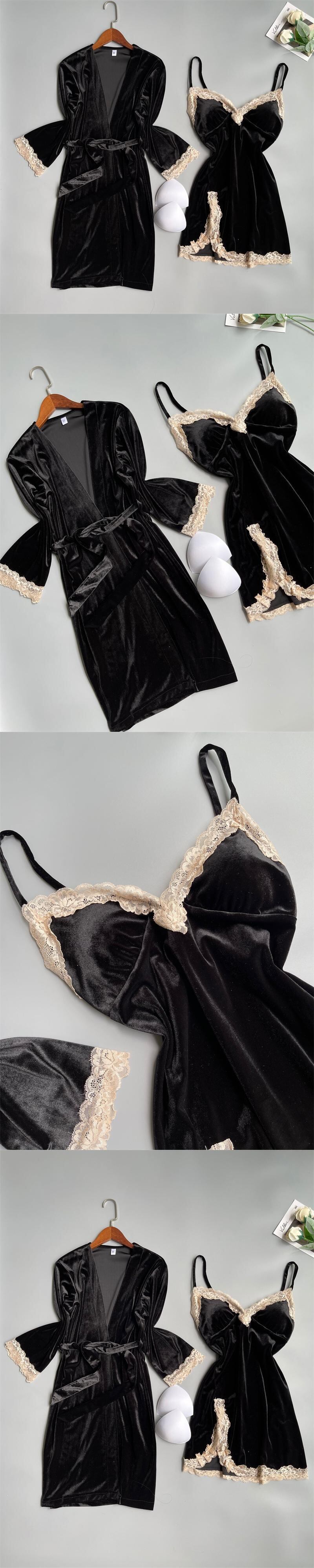 セクシーなパジャマ女性2021ゴールドベルベットナイトガウンツーピースレース胸パッドサスペンダーナイトドレス女性春と秋 スプリング 春物 オータム 秋物 ワンピース ランジェリー セクシー ルームウェア41210052638 | Plug Shop