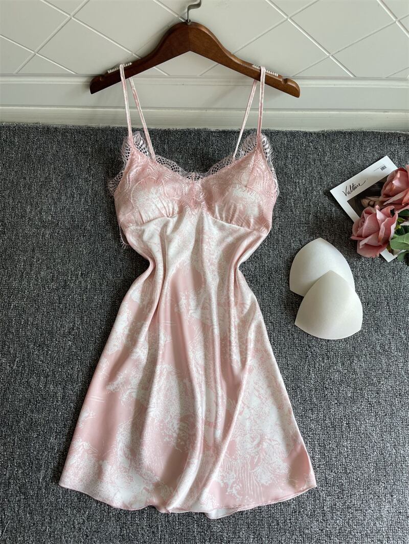 秋と冬の新しいセクシーなパジャマ女性プリントレースサスペンダーナイトドレスルーズで胸パッドの家庭用衣類と快適 オータム 秋物 ウィンター 冬物 ワンピース ランジェリー セクシー ルームウェア34749592143 | Plug Shop