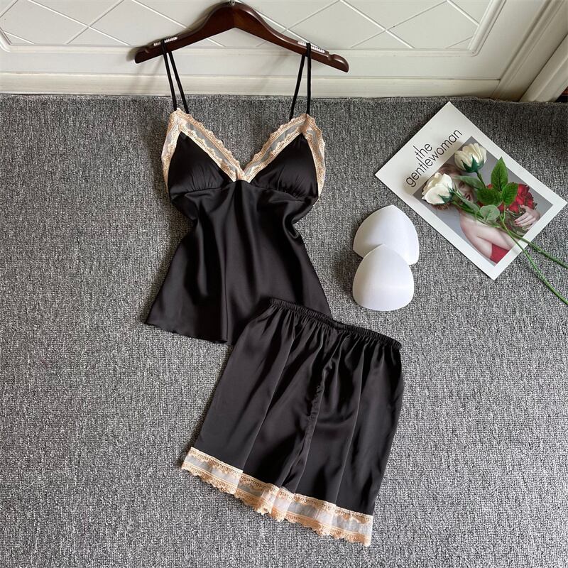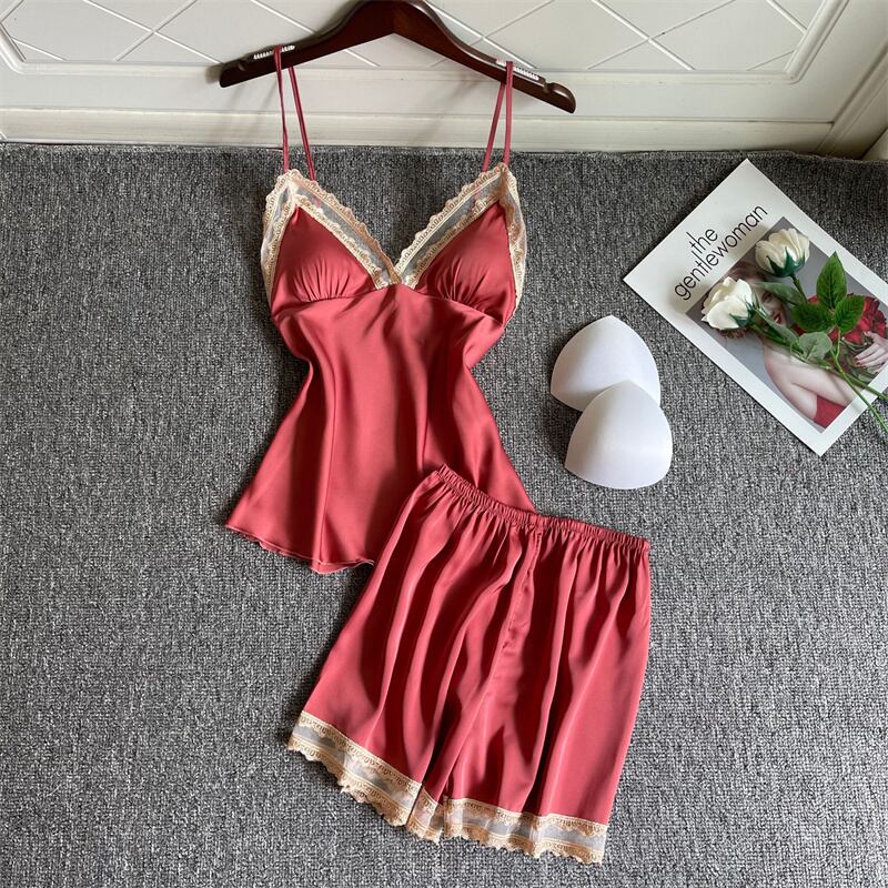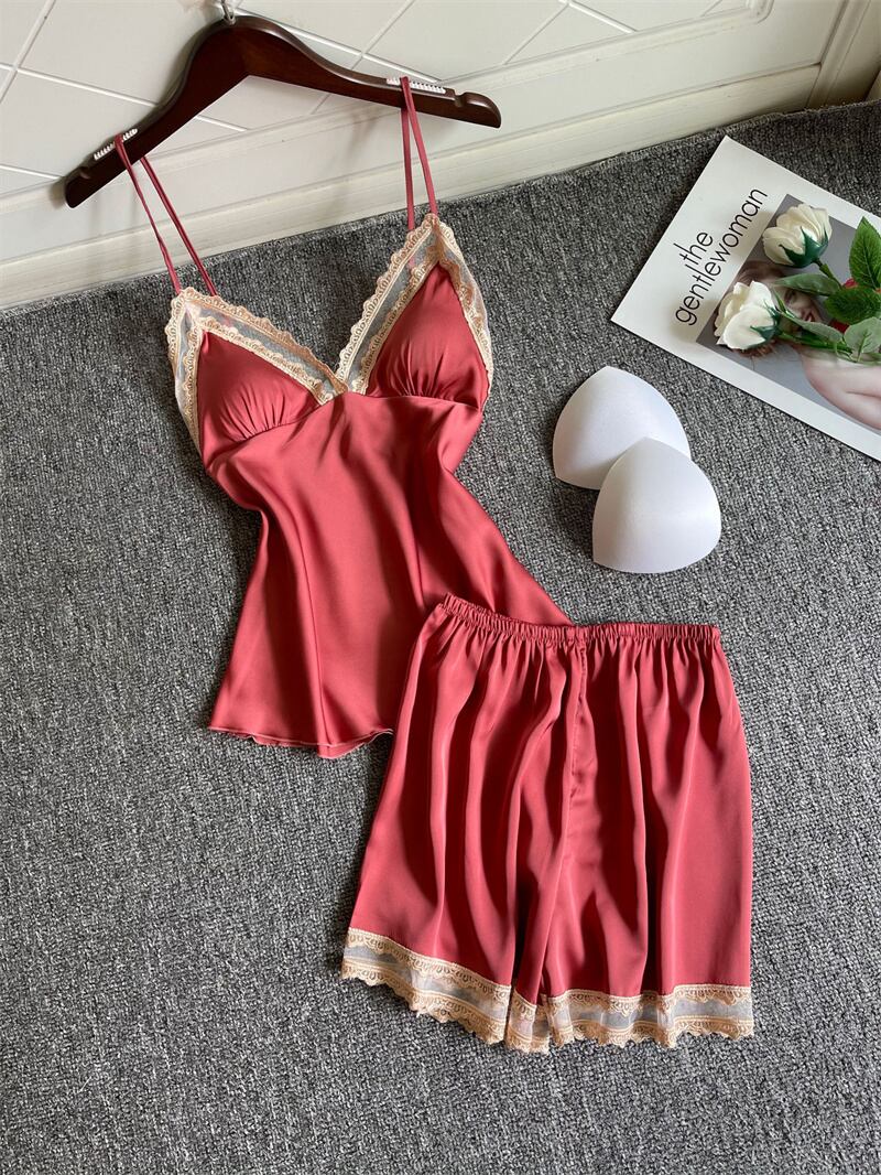 春夏新作セクシーパジャマレディースプリントレースサスペンダーショーツツーピースセットチェストパッドホームウェアスーツ スプリング 春物 夏物 ランジェリー セクシー ルームウェア59530966520 | Plug Shop