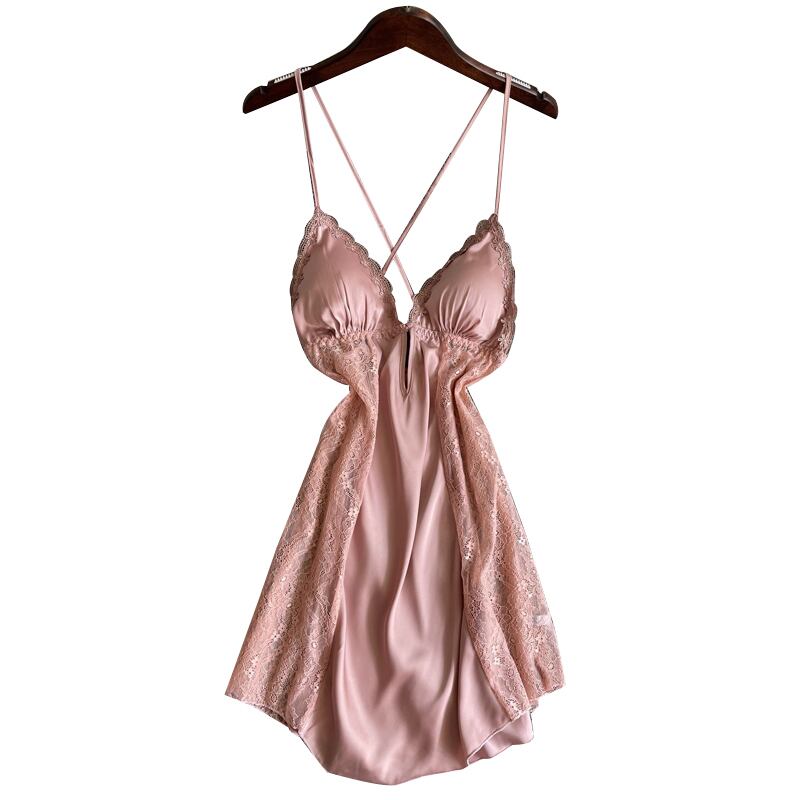 ホームパジャマ若い女性セクシーなアイスシルクネグリジェ薄いセクションバッククロス中空ショートスカート胸パッド付き夏 夏物 ワンピース ランジェリー セクシー ルームウェア68913094353 | Plug Shop