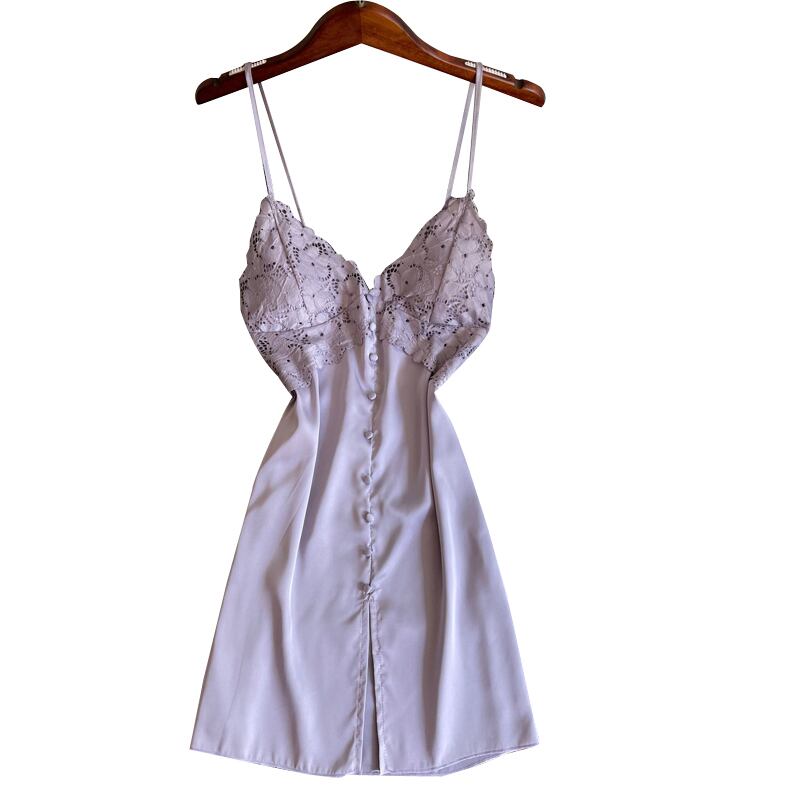 ホットセクシーなサスペンダーナイトドレス純粋な欲望女性の春の下着アイスシルクベルト胸パッドボタン薄いレースのパジャマ スプリング 春物 ハーネス ピュア ワンピース ランジェリー セクシー ルームウェア67574651495 | Plug Shop
