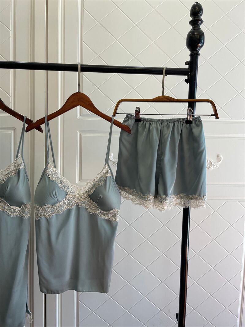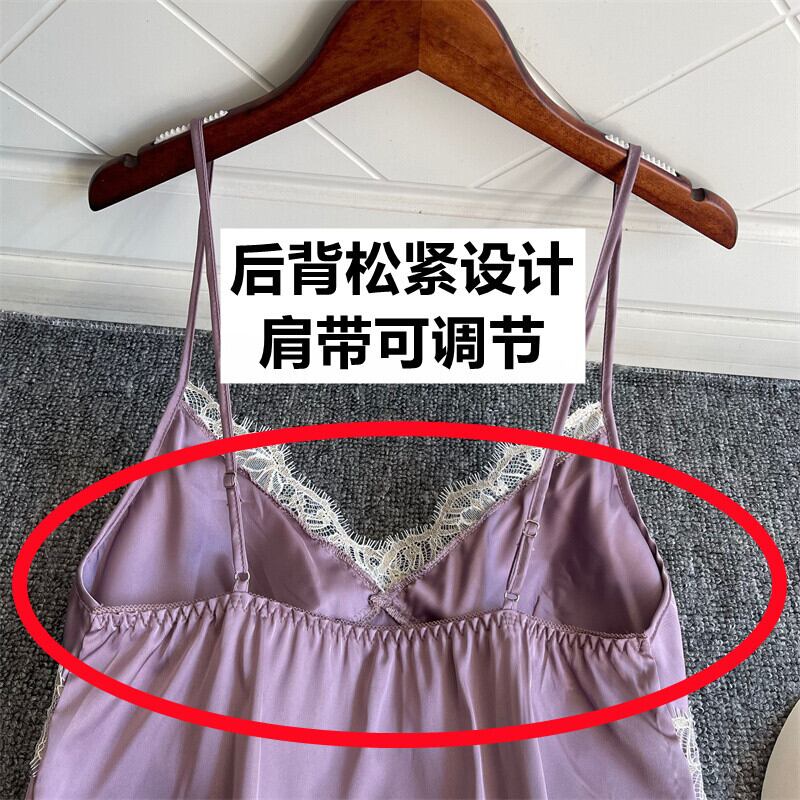 薄手のアイスシルクパジャマ女性夏長袖カジュアルセクシーレースセクシーシルク家庭服4点セットチェストパッド付き ロング 夏物 ランジェリー セクシー ルームウェア678298127 | Plug Shop