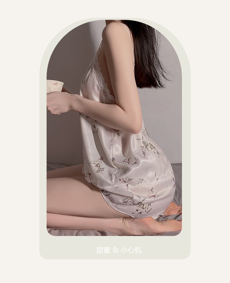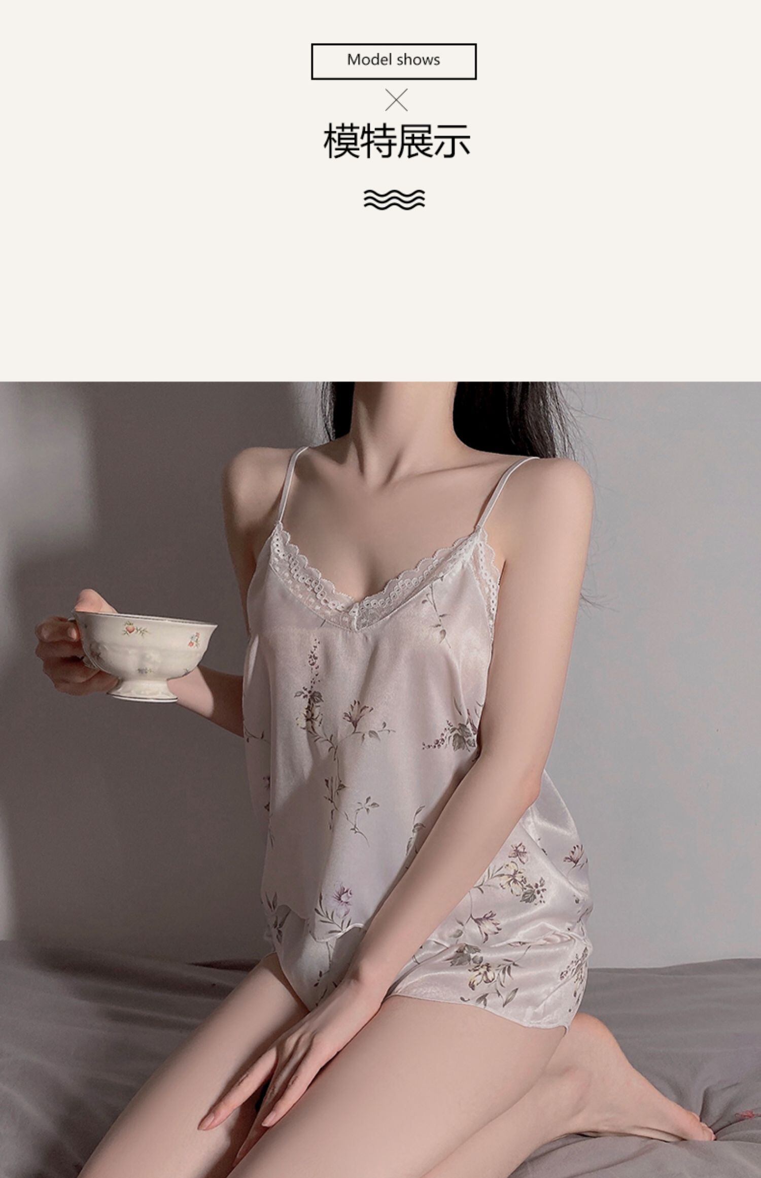 女王猫ブリーダーセクシーなアイスシルクスリングパジャマスーツ女性の甘いプリントホームサービス純粋な欲望風ネグリジェ薄い 大人ガーリー スウィート キュート カジュアル ピュア ワンピース ランジェリー セクシー23012612130 | Plug Shop