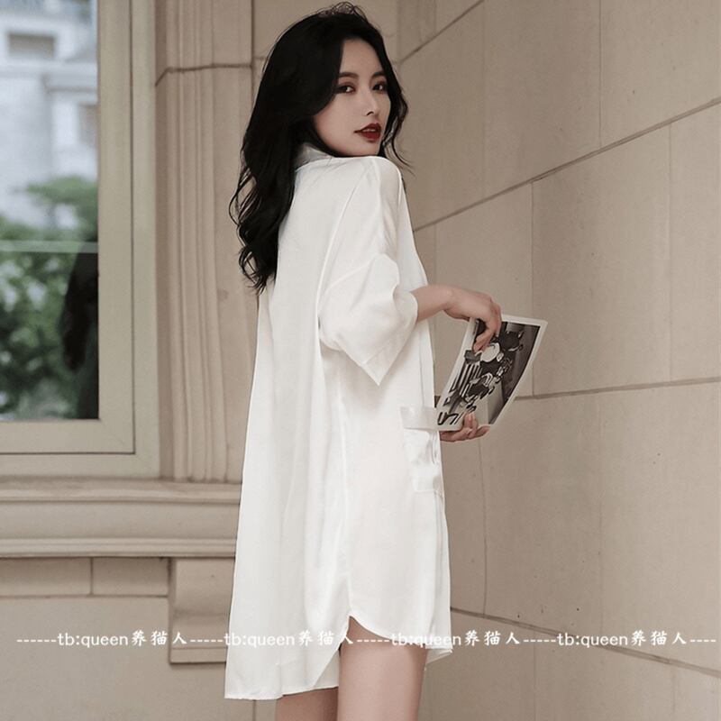女王猫ブリーダーセクシーシャツパジャマ女性純粋な欲望風氷シルクボーイフレンド風白夏長袖ネグリジェ ロング ホワイト 夏物 ピュア ワンピース ランジェリー セクシー58204827467 | Plug Shop