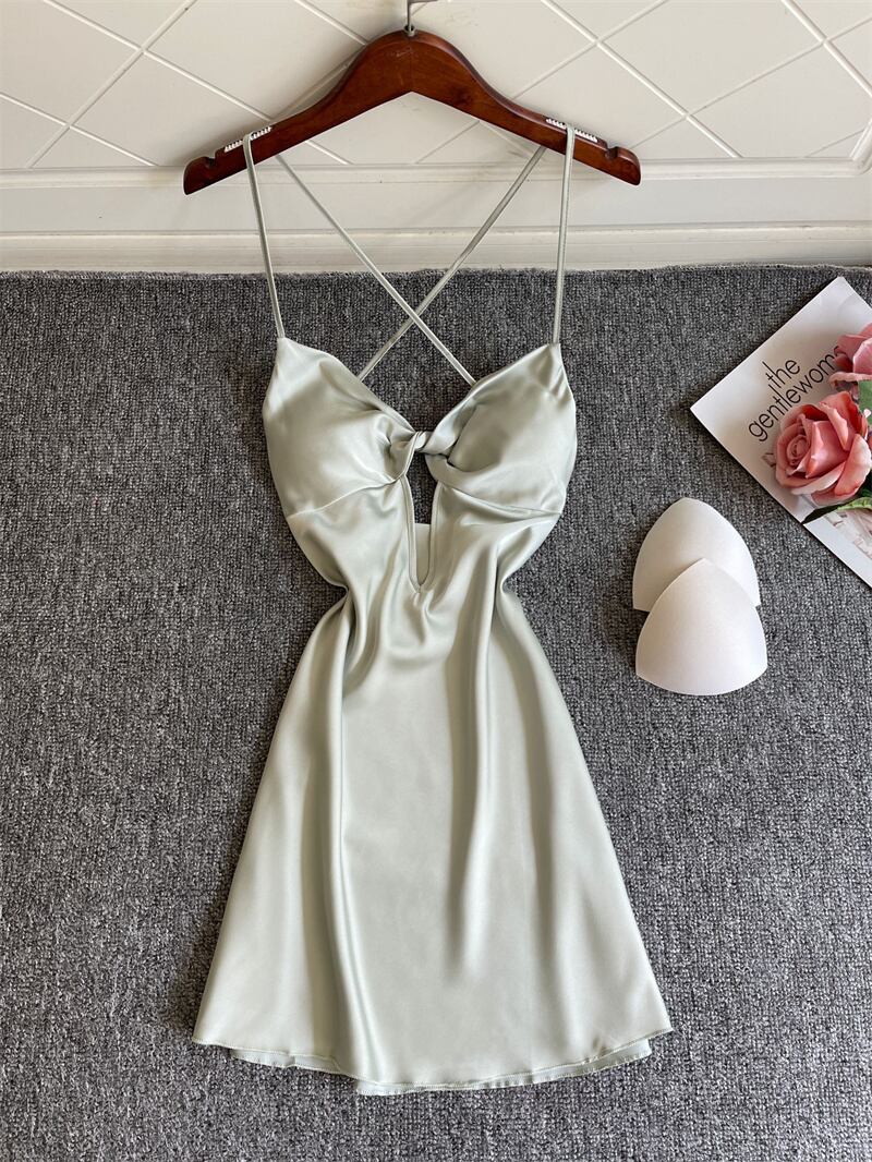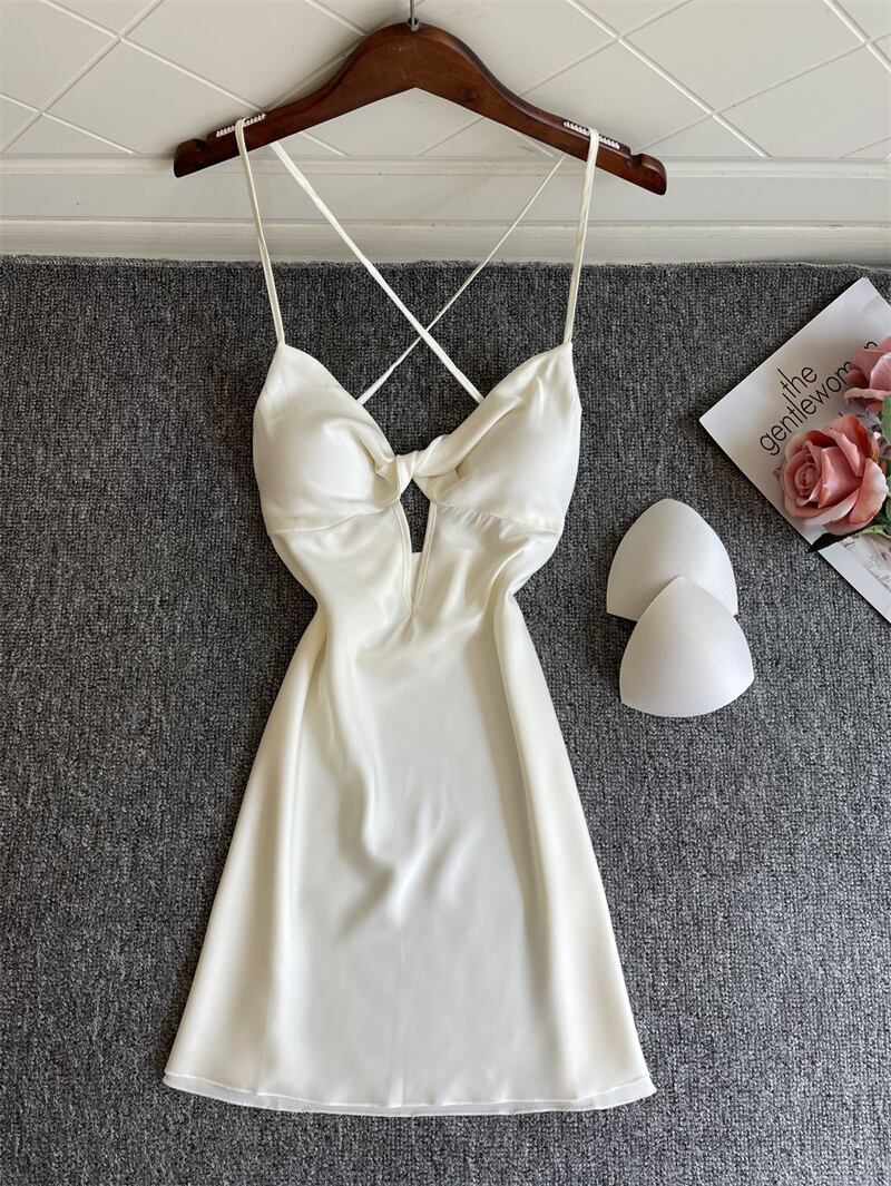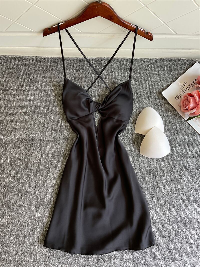 2022年の新しいナイトドレスの女性の夏のサスペンダーショートスカートアイスシルクセクシーな薄いセクション純粋な欲望高度なレースの透明なストラップチェストパッド 夏物 ピュア ワンピース ランジェリー セクシー ルームウェア41080260866 | Plug Shop